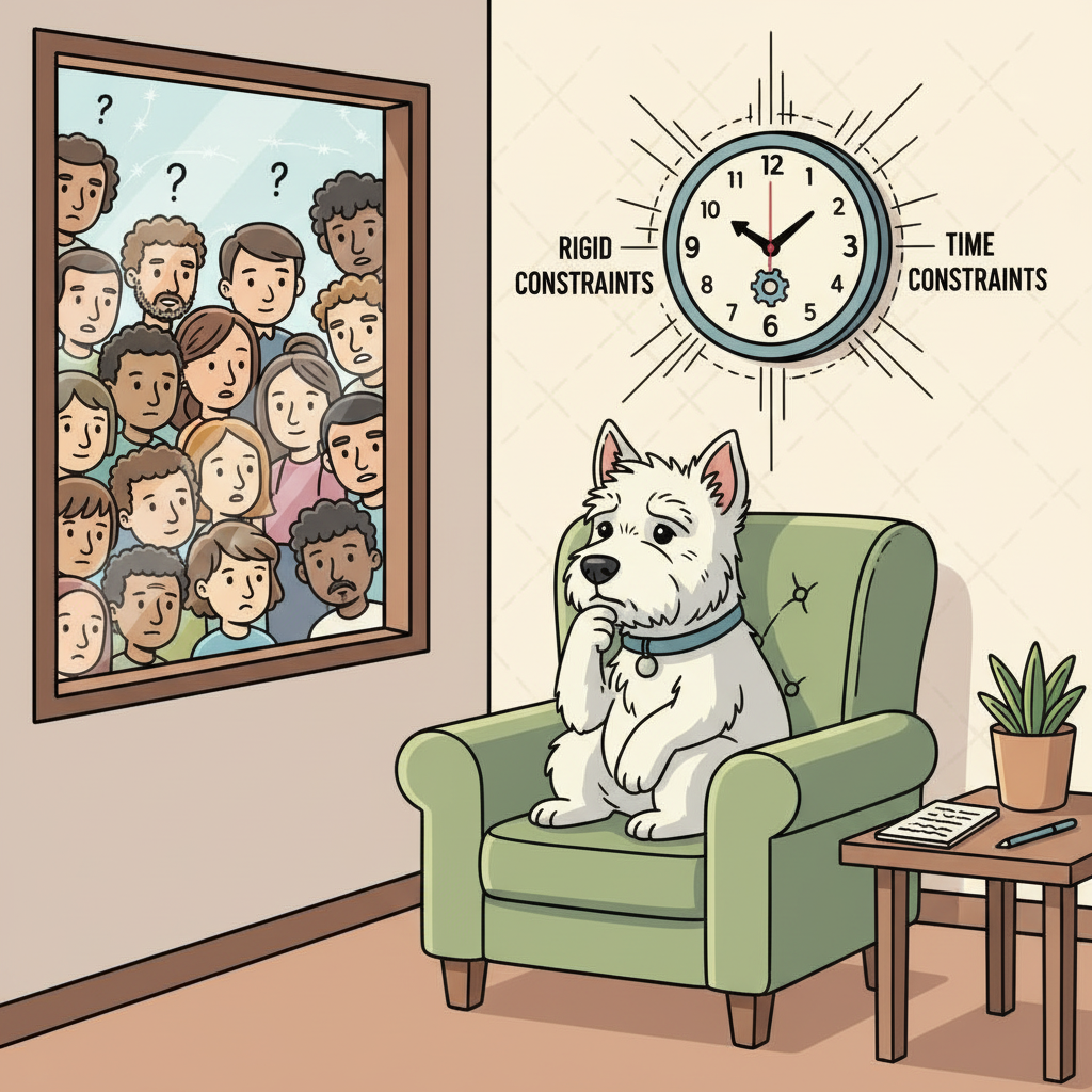 This is professional consultation and peer learning. It’s not therapy, not crisis support, and not a place to be graded.